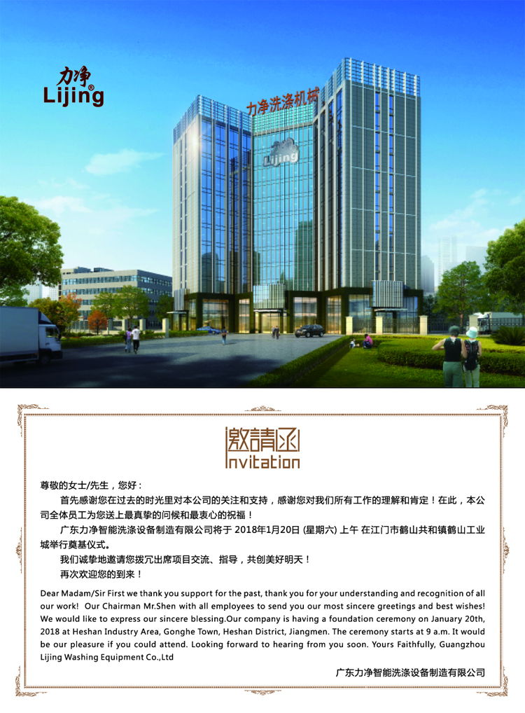 邀請函:力凈公司江門市鶴山工業城力凈項目奠基儀式